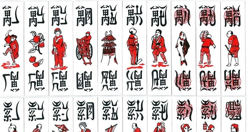 Phu bí (hàng ngang): Mỗi phu bí gồm 3 quân bài cùng số nhưng khác pho, ví dụ như Nhị Văn, Nhị Vạn và Nhị Sách.