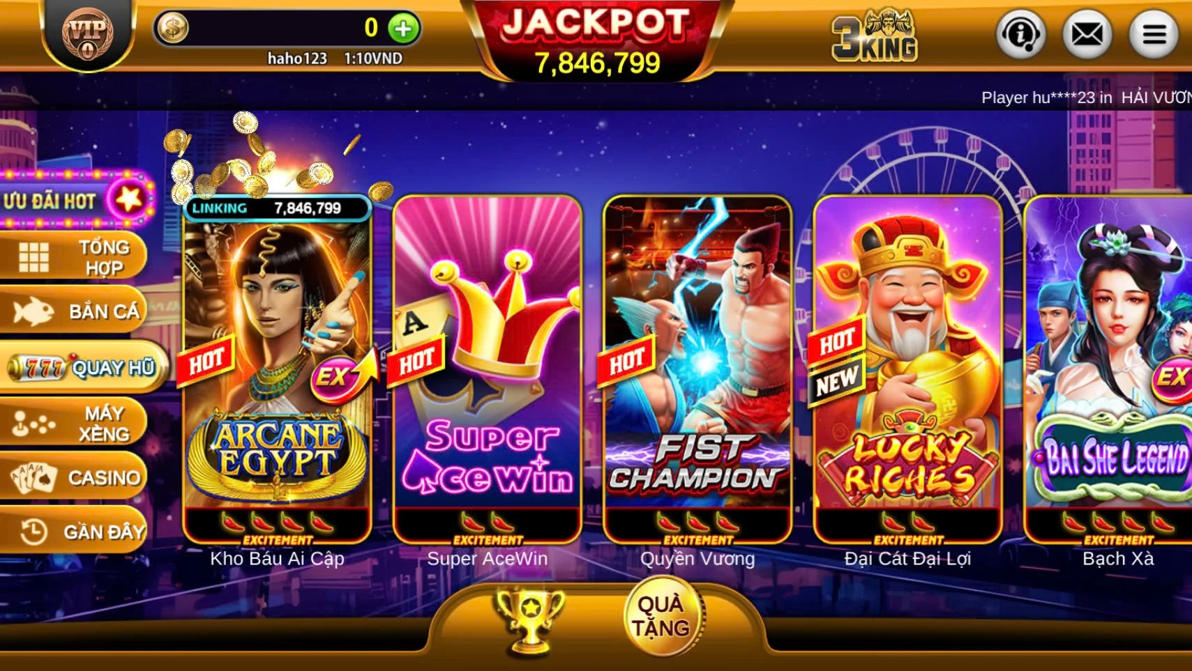 Slot: Các trò chơi slot đa dạng và hấp dẫn tại 3KING sẽ đem đến cơ hội giành phần thưởng lớn cho người chơi.
