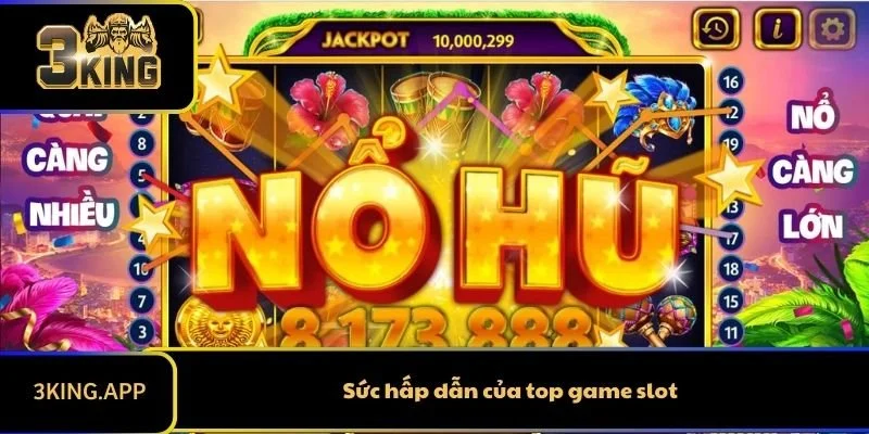 Game slot từ lâu đã trở thành một phần không thể thiếu trong thế giới giải trí trực tuyến, thu hút hàng triệu người chơi nhờ sự đa dạng, dễ chơi và cơ hội trúng thưởng hấp dẫn. Trong bài viết này, chúng ta sẽ khám phá sức hấp dẫn của top game slot và điểm qua những tựa game nổi bật nhất hiện nay. Hãy cùng tìm hiểu để có những giờ phút thư giãn và cơ hội thắng lớn!